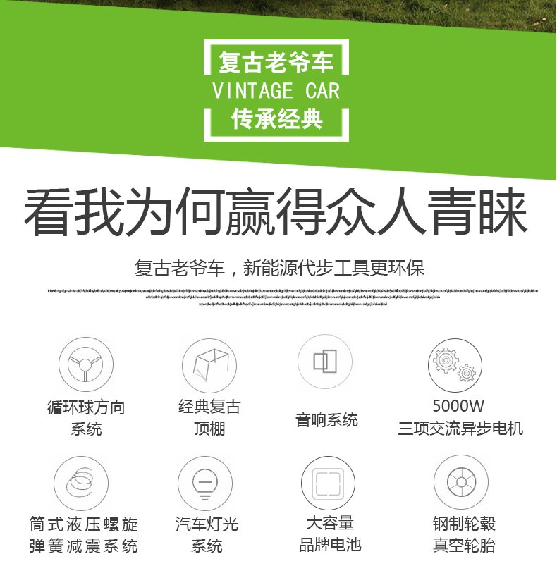 v8 電動老爺車觀光車四輪電瓶景區(qū)游覽車可定制
